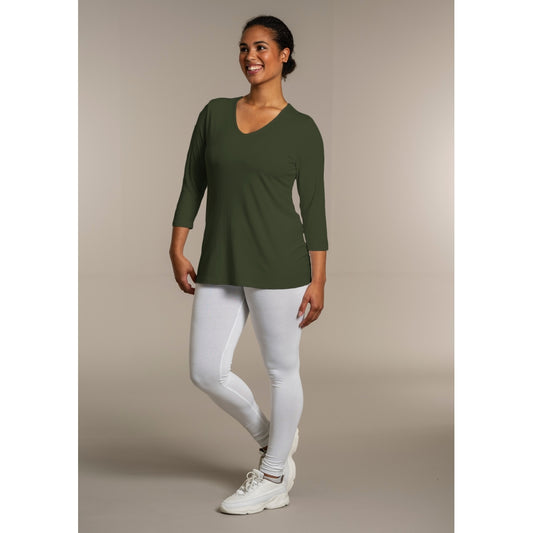 T-Shirt mit 3/4-Ärmeln – Khakigrün