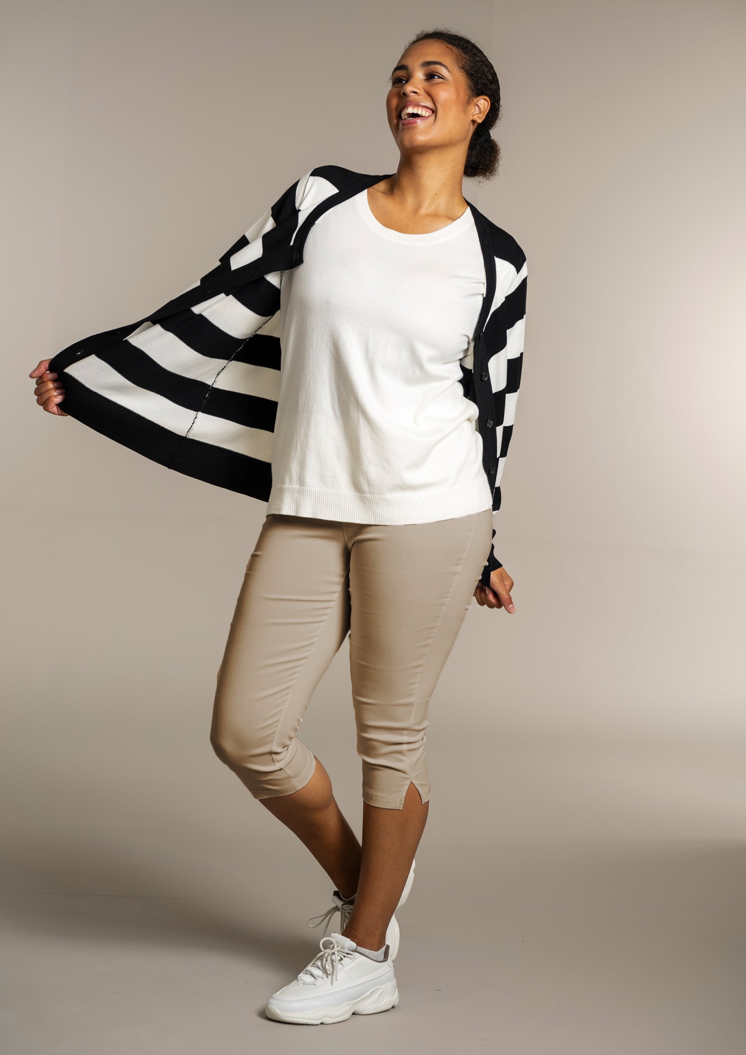 Die Strickwaren bestehen aus bequemen Materialien, die sich weich auf der Haut anfühlen und eine natürliche Passform bieten, die angenehm zu tragen ist – sowohl solo als auch in Kombination mit anderen Kleidungsstücken.